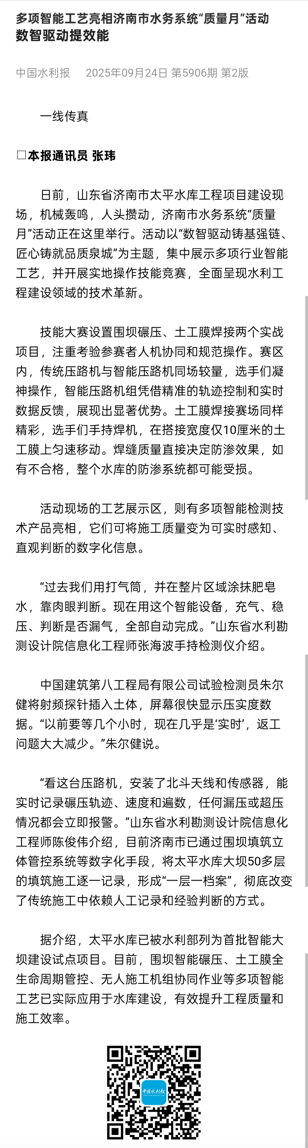 ? ? ? ?下一步,清源水務(wù)集團(tuán)將繼續(xù)以高標(biāo)準(zhǔn)完成項(xiàng)目工程建設(shè),以此次濟(jì)南市水務(wù)系統(tǒng)“質(zhì)量月”活動為契機(jī),推動太平水庫工程在數(shù)字化轉(zhuǎn)型及智能化管理等方面持續(xù)走深走實(shí),促進(jìn)太平水庫工程高質(zhì)量建設(shè)發(fā)展。